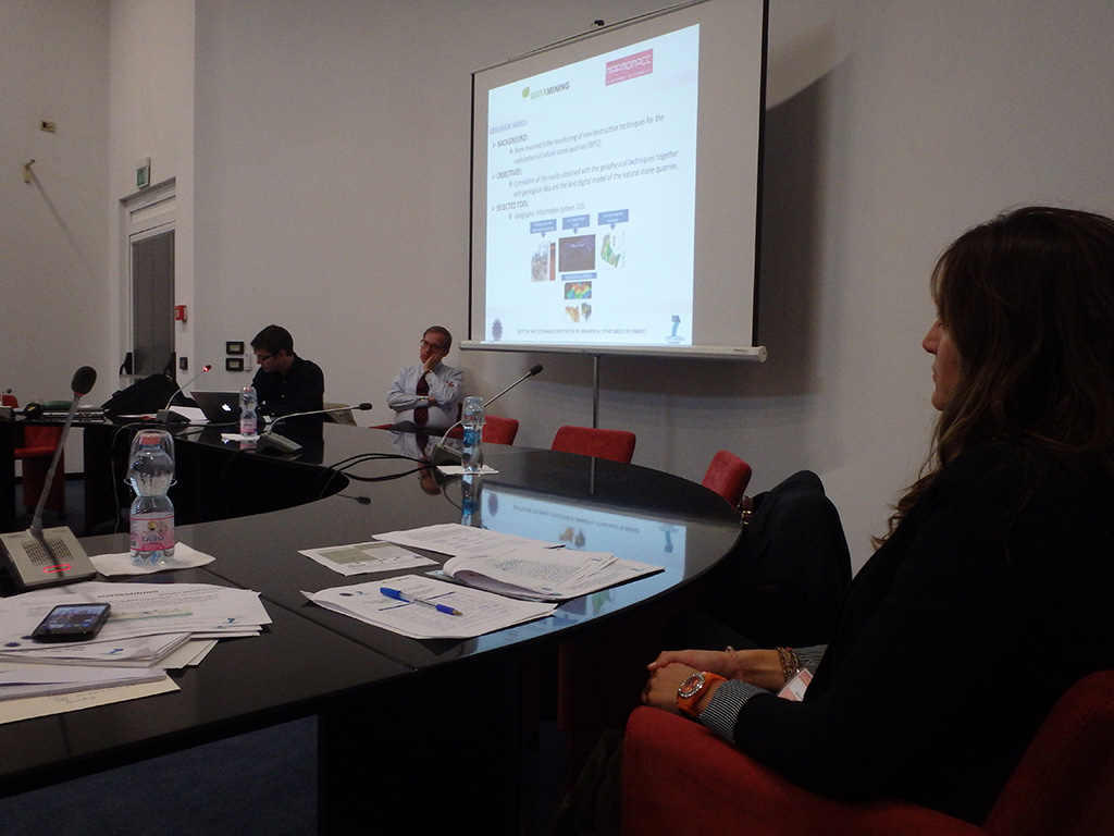 The I SUSTAMINING Training Course (1-2 October) was developed both at the Marmomacc Fair as well as at the Ghirardi case study quarry, with the aim to train to quarry owners, geologists, mining engineers, Natural Stone Associations representatives, students and general public about the possibilities of making a selective and sustainable exploitation of natural stone quarries by means of the different geophysical techniques and the interpretation of the data for obtaining the geological models and the quality indexes.